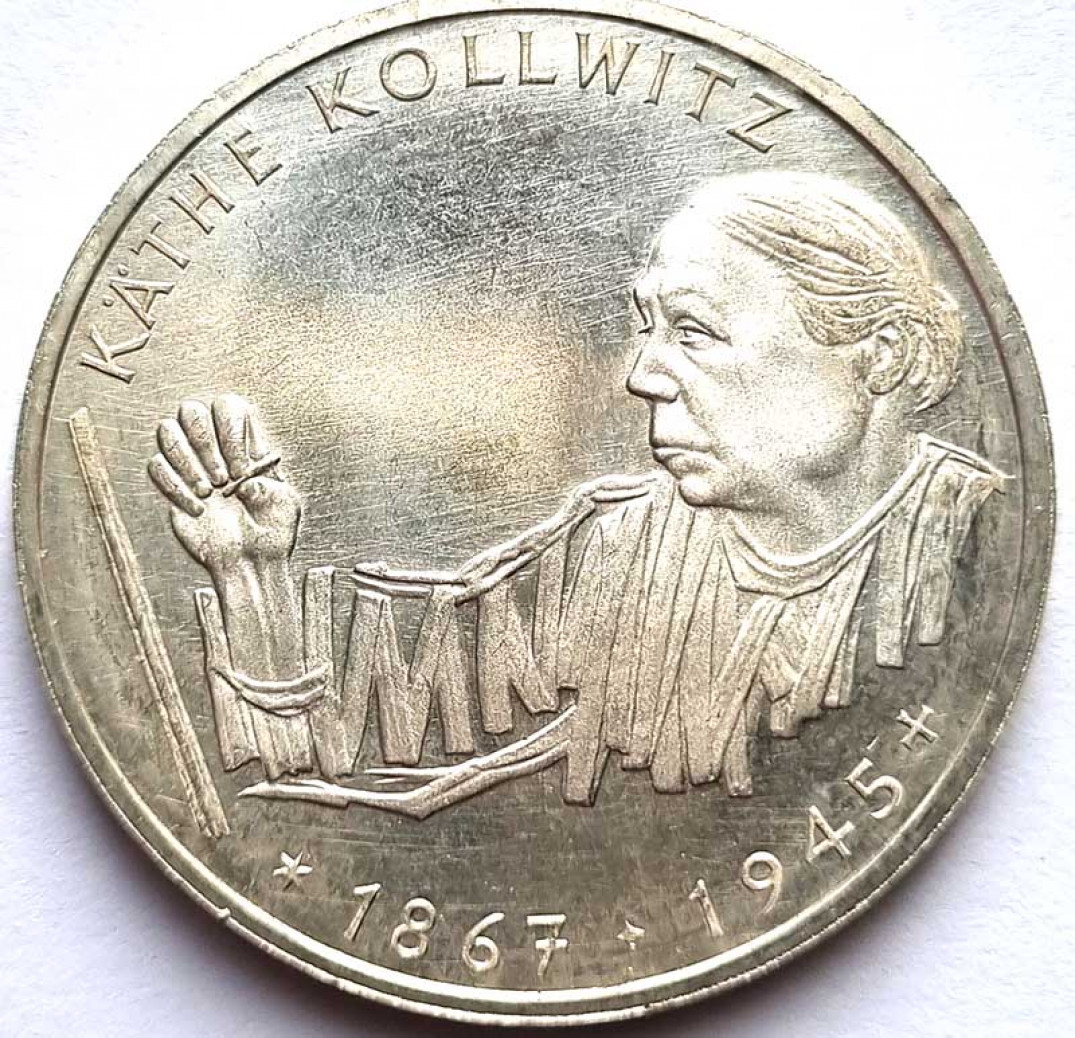 10 марок - 125 лет со дня рождения Кете Кольвиц, 1992 год, серебро