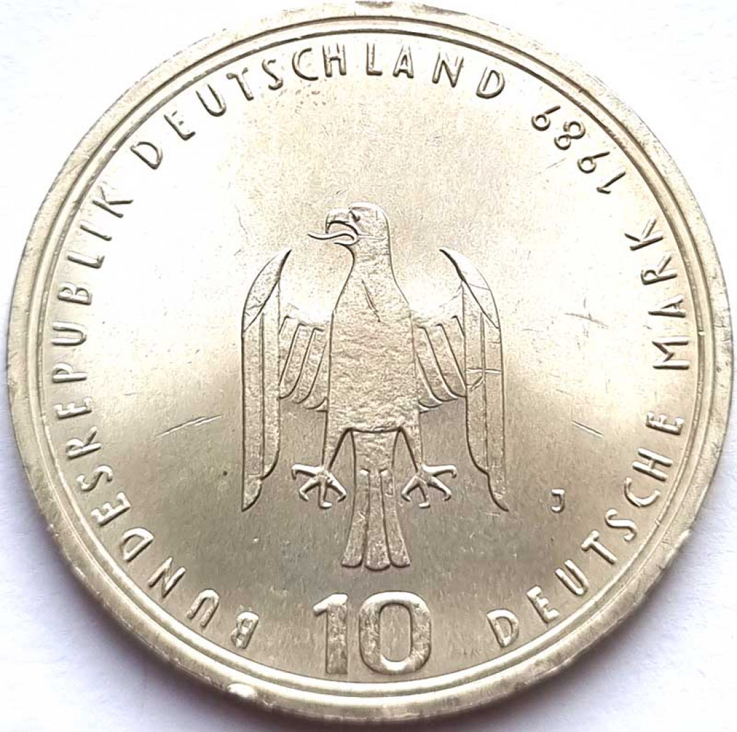 10 марок - 800 лет Гамбургскому порту, 1989 год, серебро