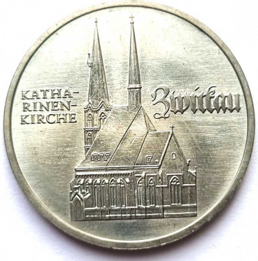 5 марок - 500 лет со дня рождения Томаса Мюнцера, Церковь Св. Екатерины в Цвиккау, Германия, 1989 год