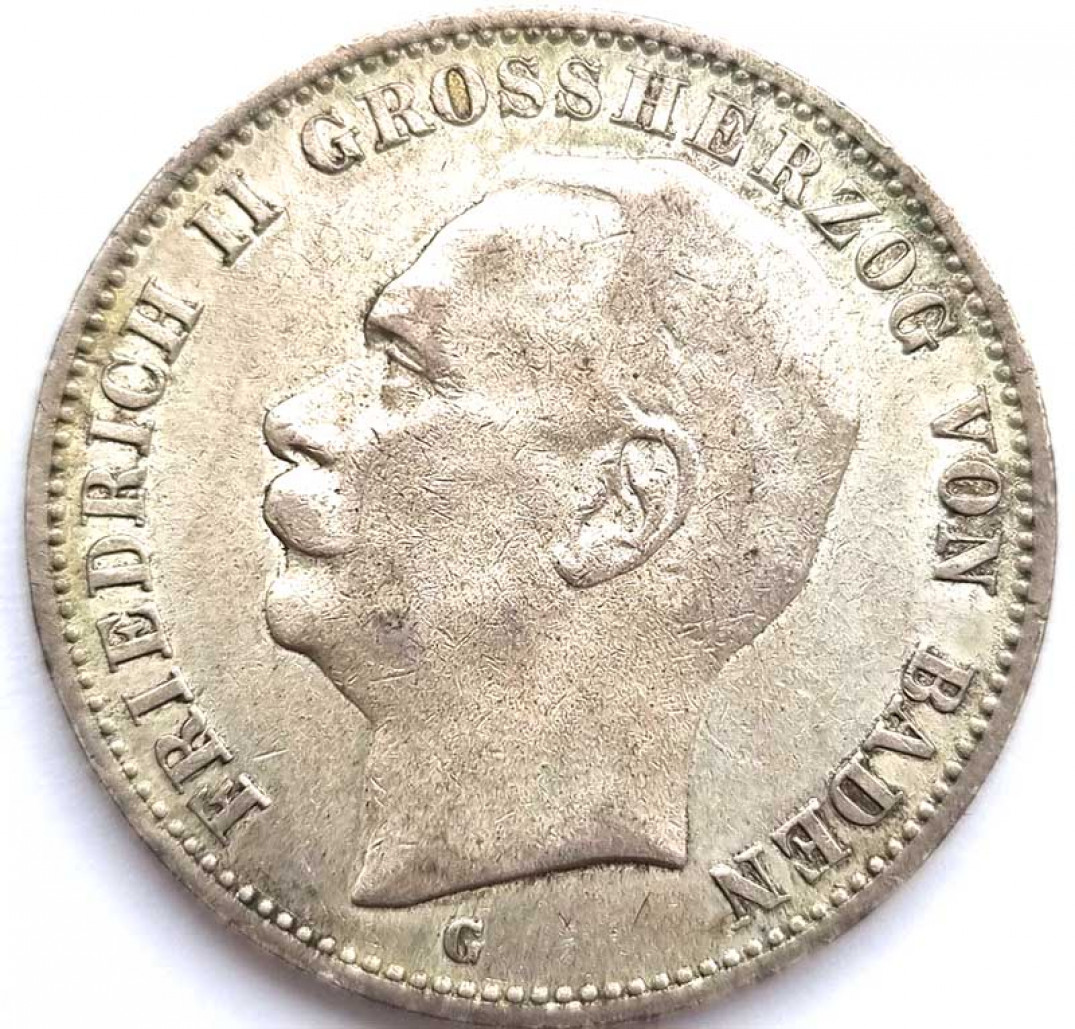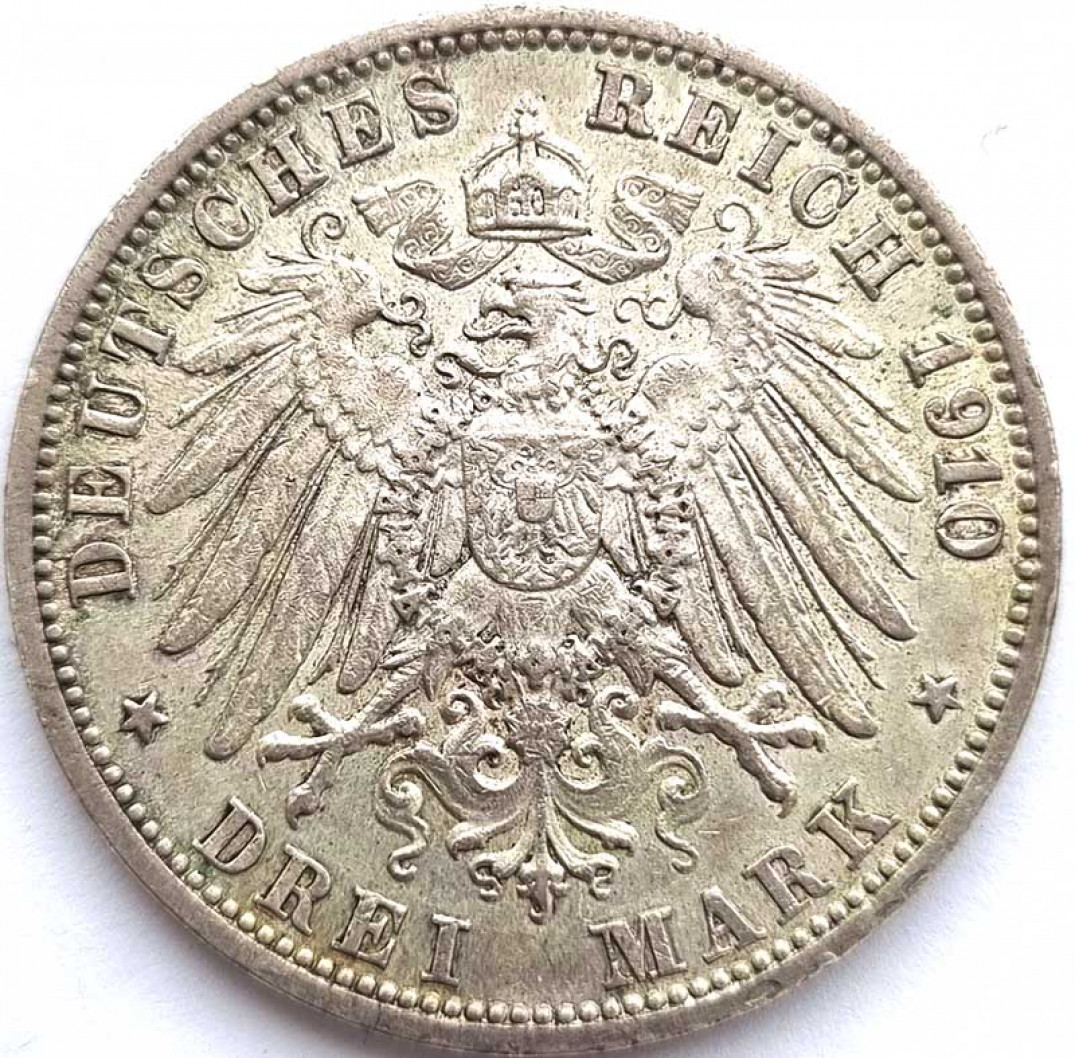 3 марки - Баден Фридрих 2, 1910 год, Германия, серебро