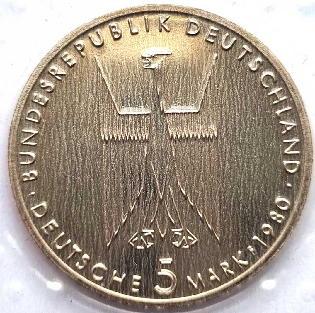 5 марок -100 лет со дня окончания строительства Кёльнского собора, Германия, 1980 год