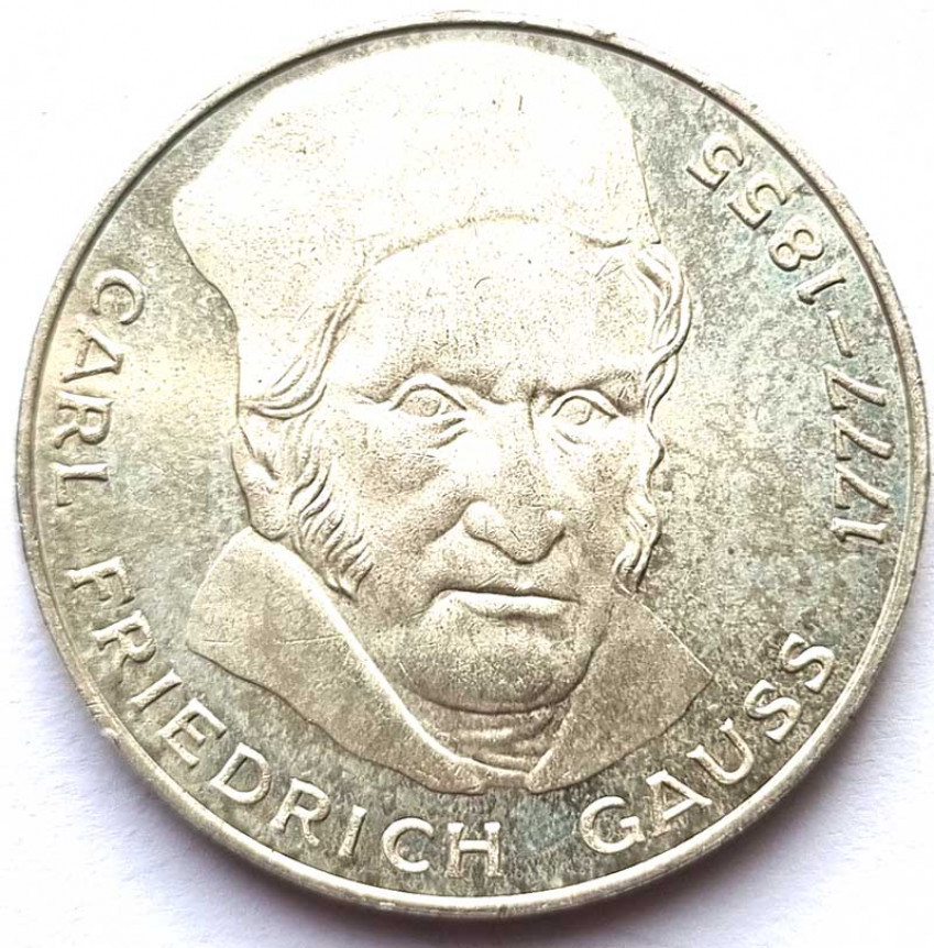 5 марок - 200 лет со дня рождения Карла Фридриха Гаусса, Германия, 1977 год, серебро