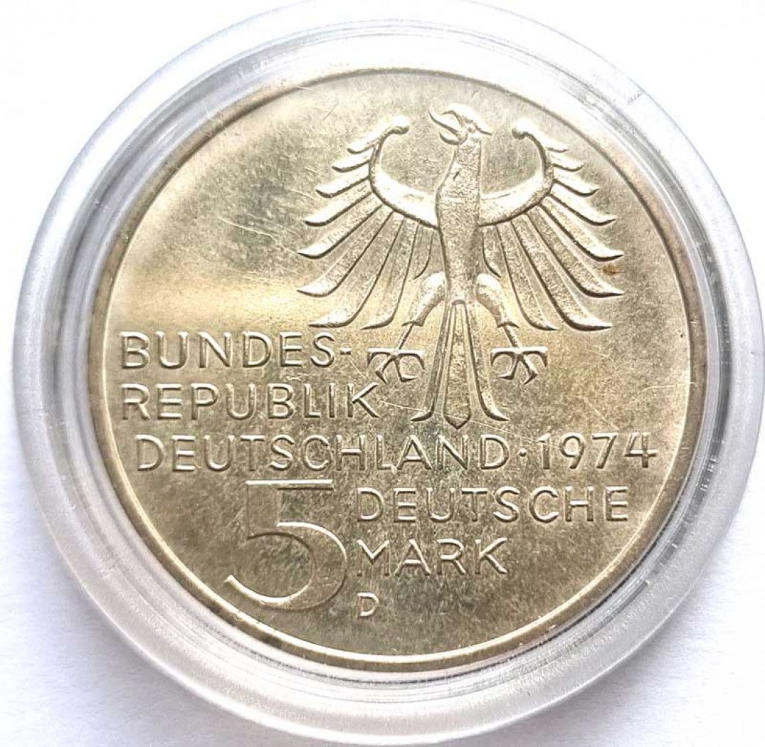 5 марок - 250 лет со дня рождения Иммануила Канта, 1974 год, серебро