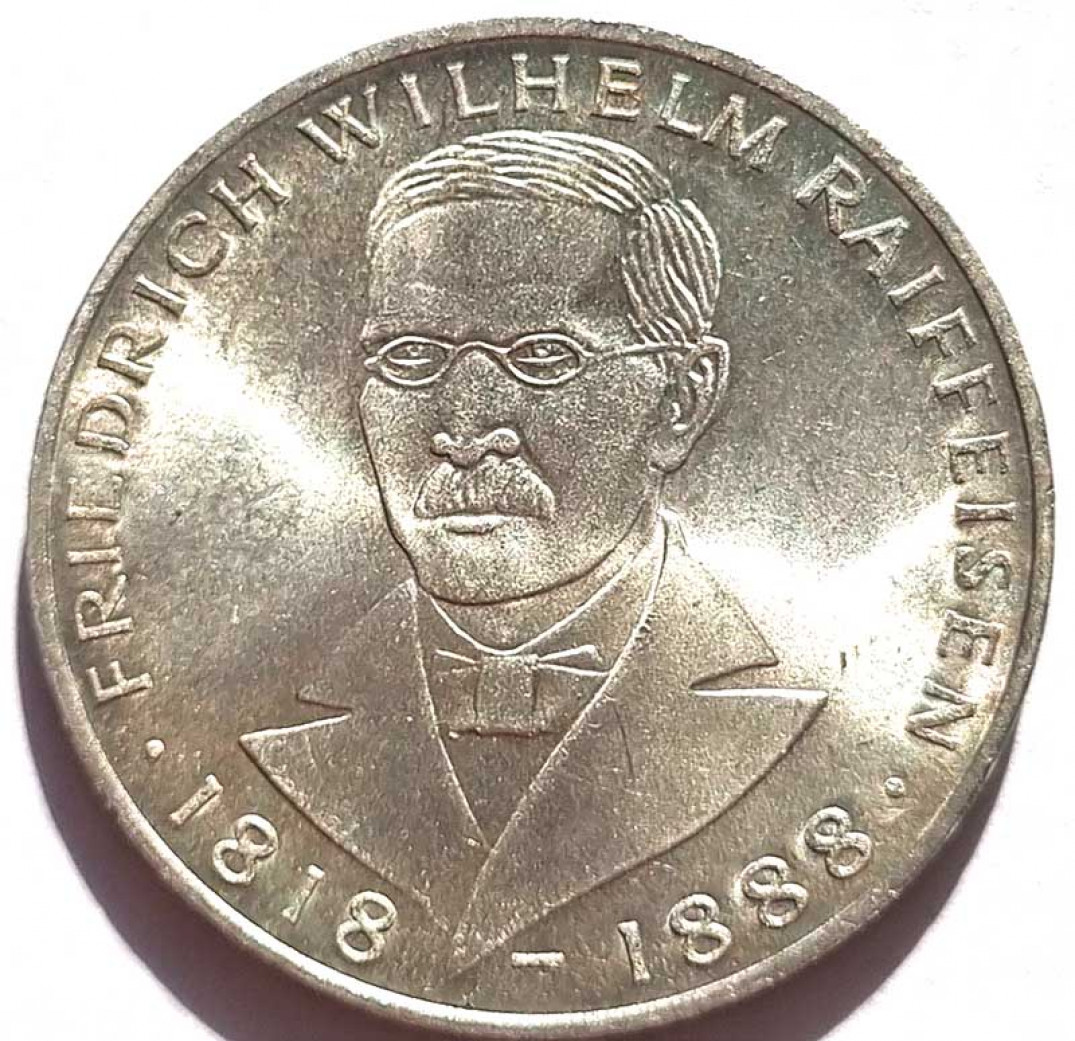 5 марок - Вильгельм Райффайзен, Германия, 1968 год, серебро