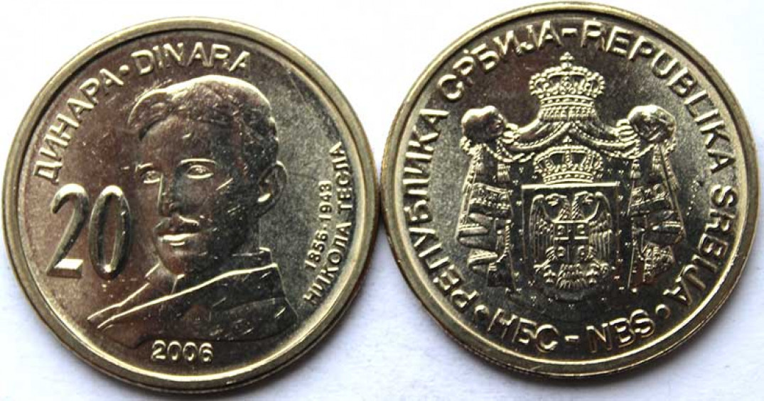 20 динар - 150 лет со дня рождения Николы Теслы, Сербия, 2006 год