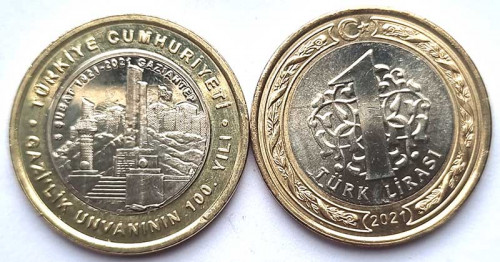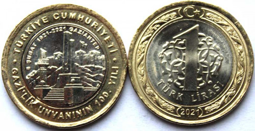 1 лира - Газиантеп - 100 лет присвоения титула, Турция, 2021 год