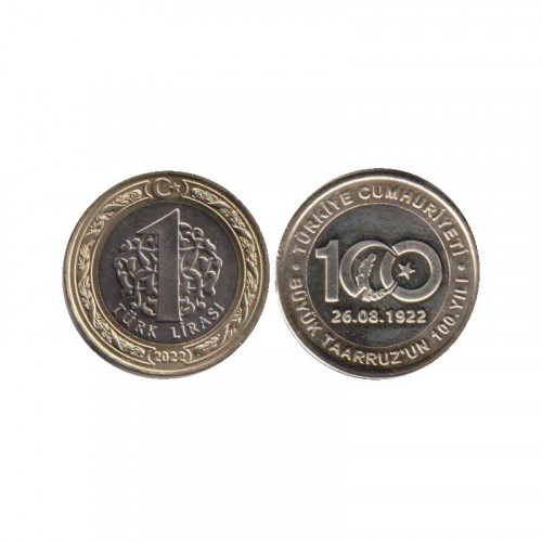 1 лира - 100 лет великому турецкому наступлению, Турция, 2022 год