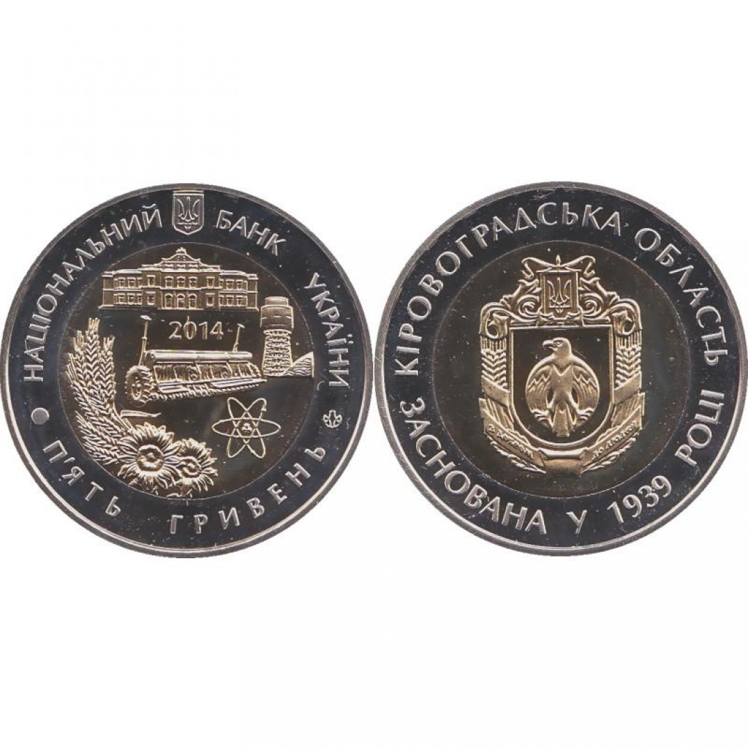 5 ГРИВЕН - (биметал)75 лет Кировоградской области ,Украина,2014 год