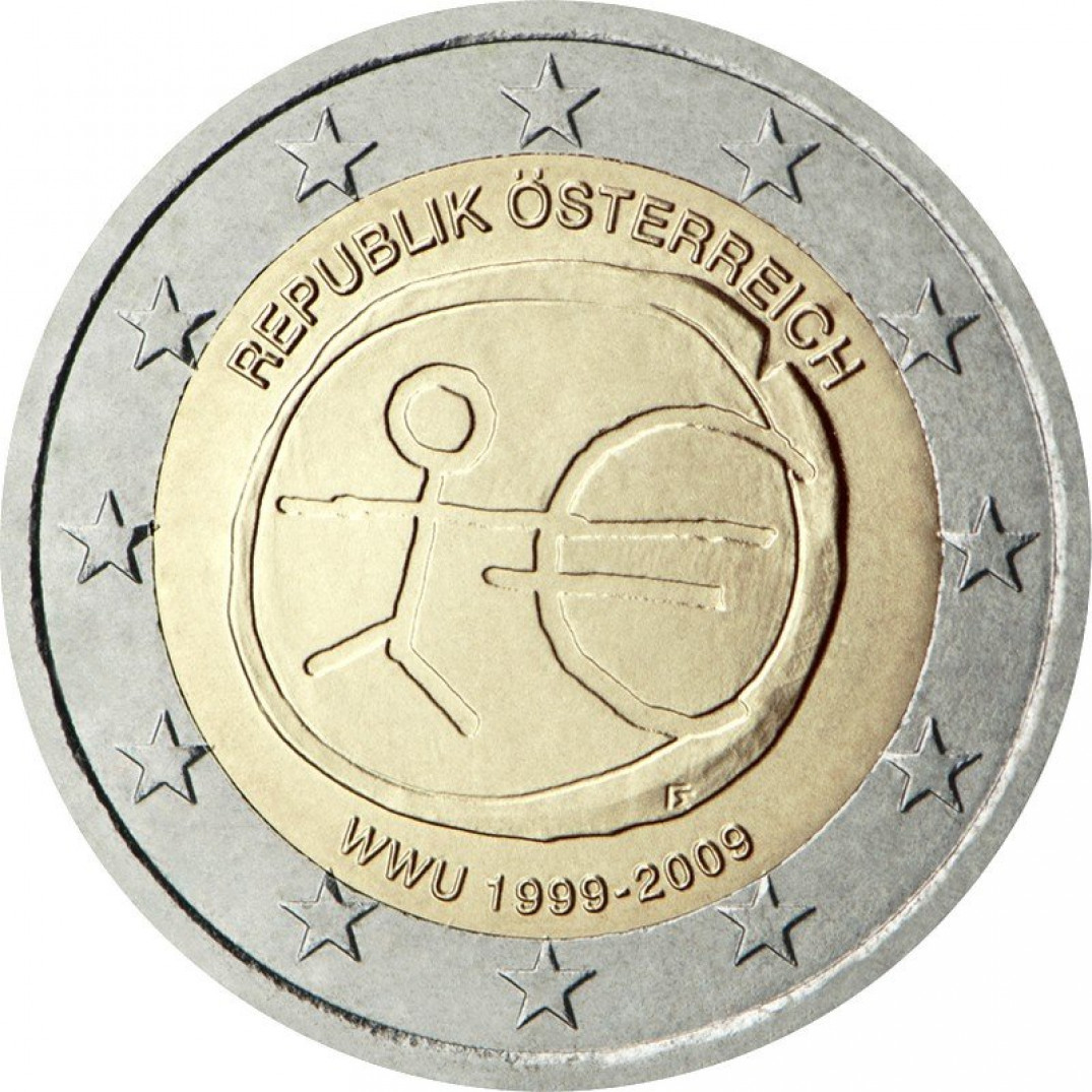 2 евро - 10 лет монетарной политике ЕС (EMU) и введению евро, Австрия, 2009 год, UNC