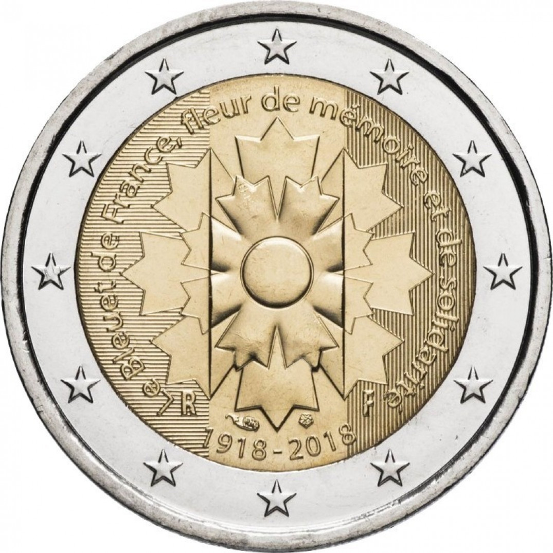 2 евро - 100 лет окончанию Первой Мировой войны, Франция, 2018 год, UNC
