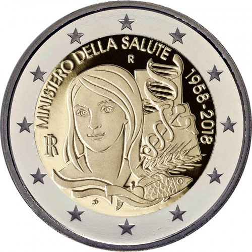 2 евро - 60 лет основанию Министерства здравоохранения, Италия, 2018 год, UNC