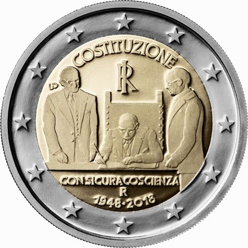 2 евро - 70 лет Конституции Итальянской республики, Италия, 2018 год, UNC