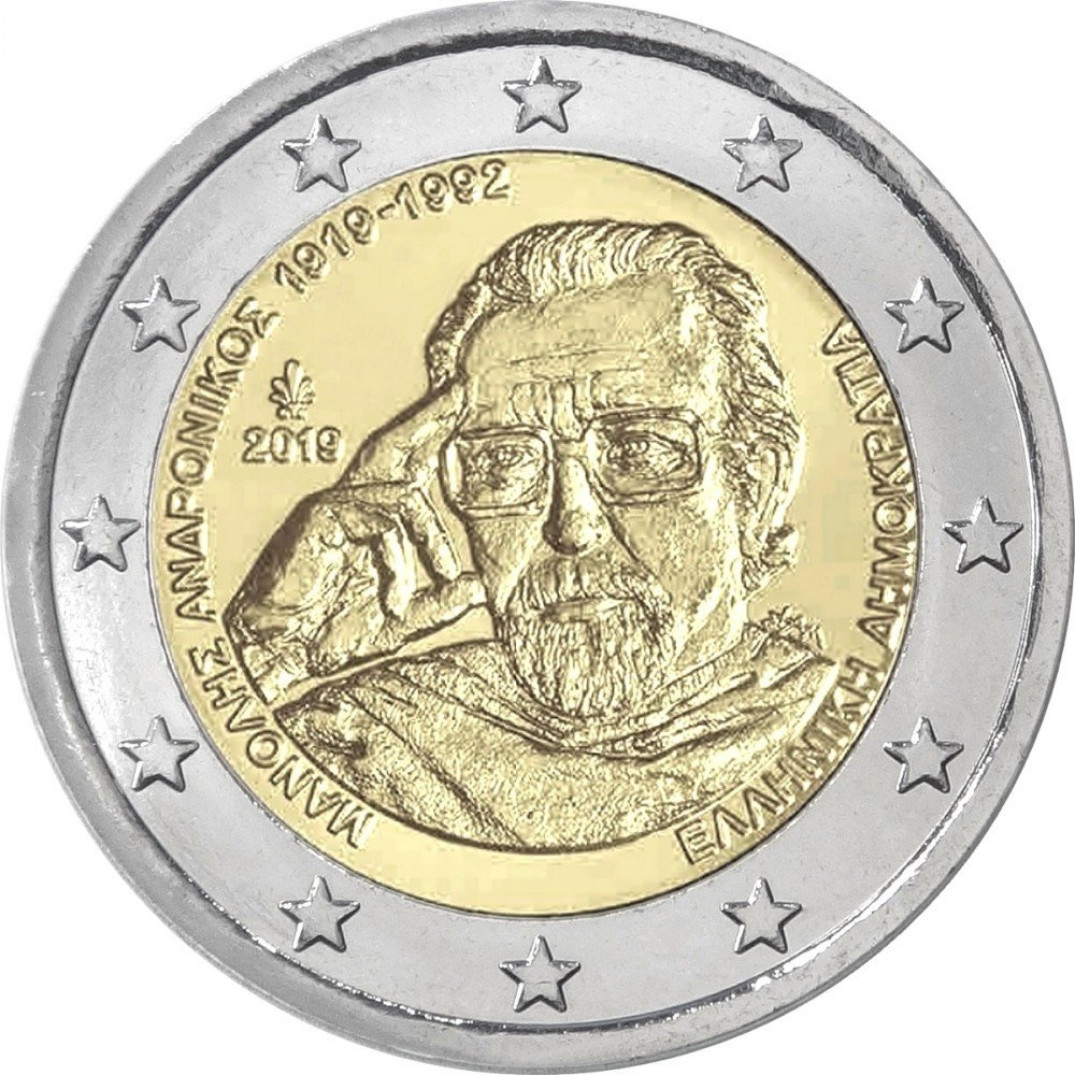 2 евро - 100 лет со дня рождения Манолиса Андроникоса, Греция, 2019 год, UNC