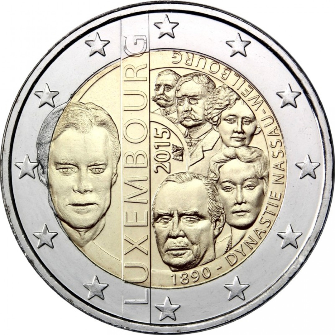 2 евро - 15 лет вступлению на престол Великого герцога Анри, Люксембург, 2015 год, UNC
