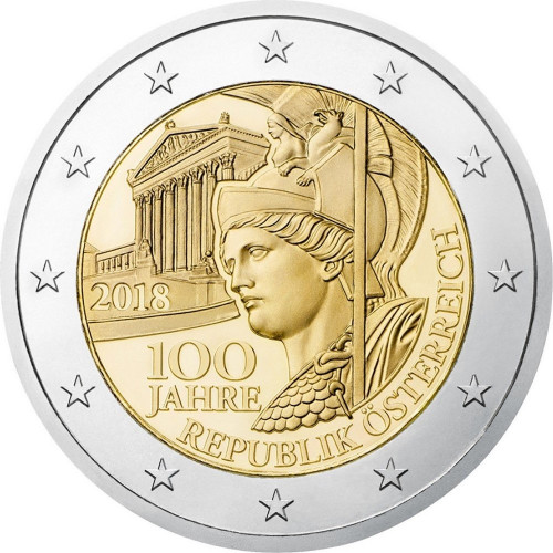 2 евро - 100 лет Австрии, Австрия, 2018 год, UNC