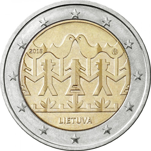 2 евро - Литовские песни и танцы, Литва, 2018 год, UNC