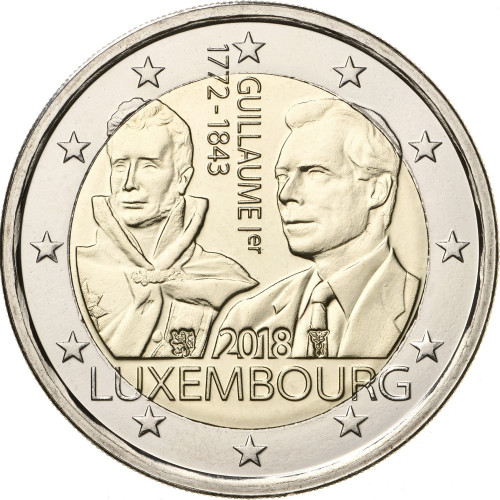 2 евро - 175 лет со дня смерти Виллема I, Люксембург, 2018 год, UNC