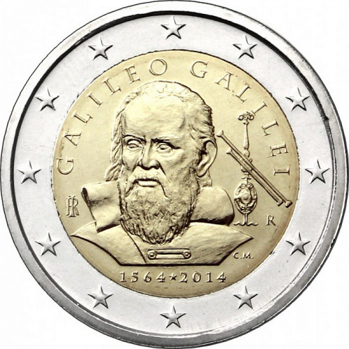 2 евро - 450 лет со дня рождения Галилео Галилея, Италия, 2014 год, UNC