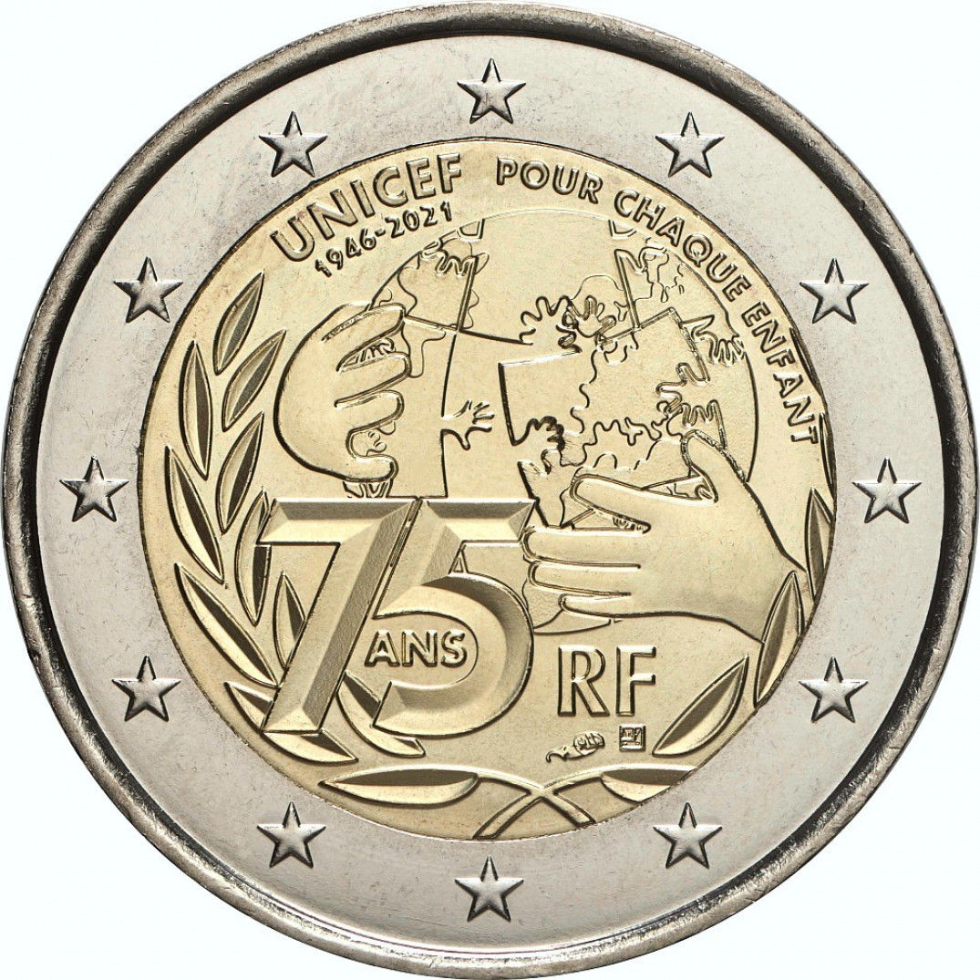 2 евро - 75 лет ЮНИСЕФ, Франция, 2021 год, UNC