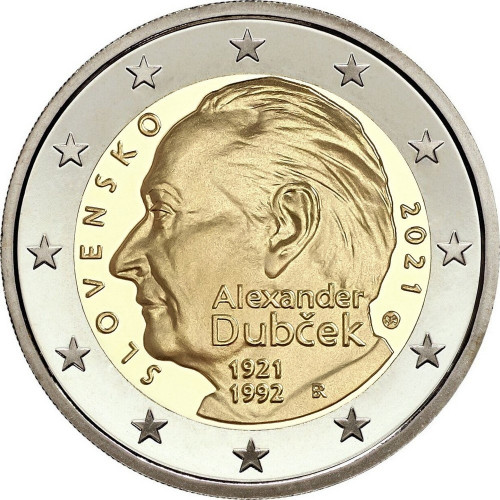 2 евро - 100 лет со дня рождения Александра Дубчека, Словакия, 2021 год, UNC