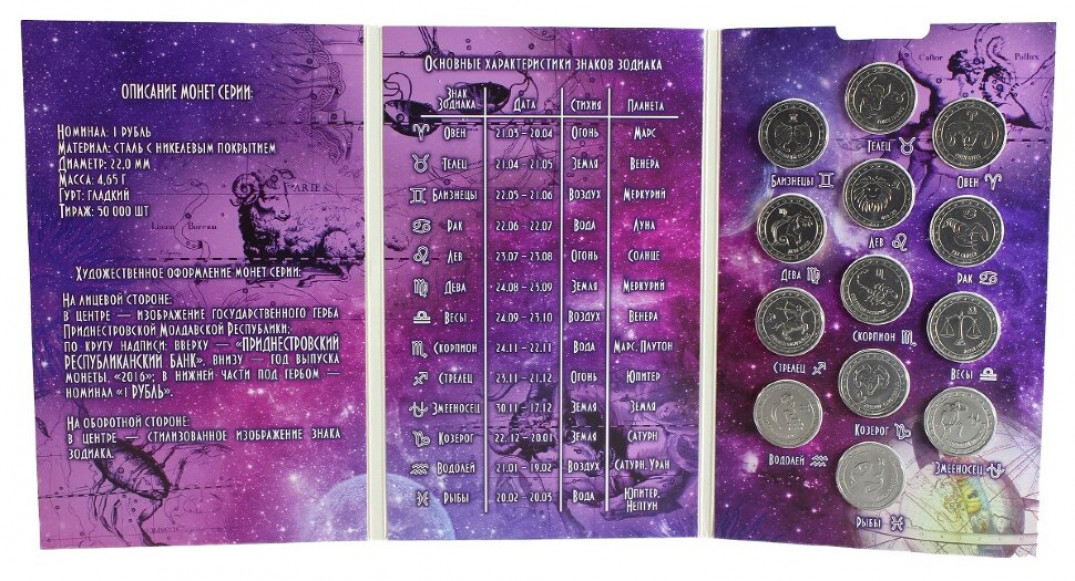 Набор из 13 монет Приднестровья Знаки Зодиака в альбоме