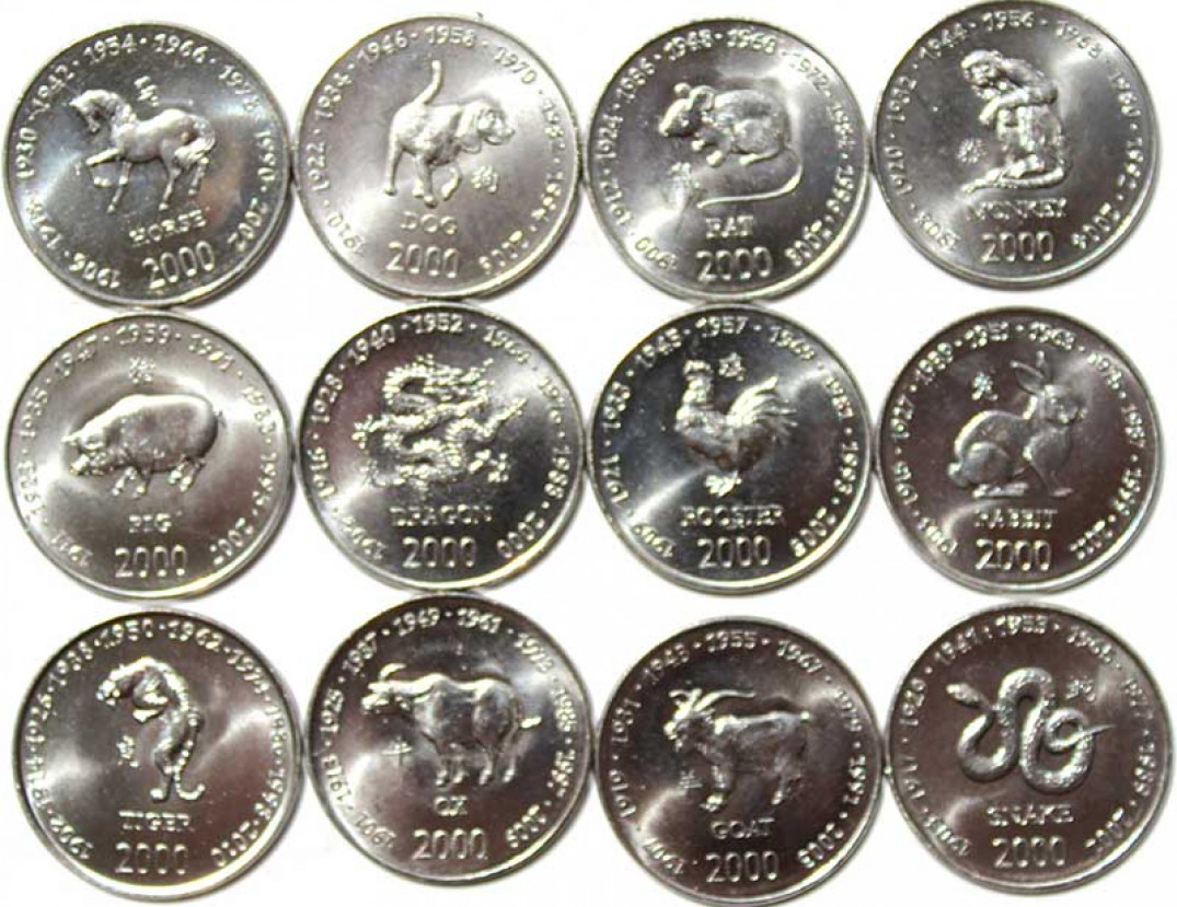 Набор монет - Китайский гороскоп, Сомали, 2000 год (12 монет)