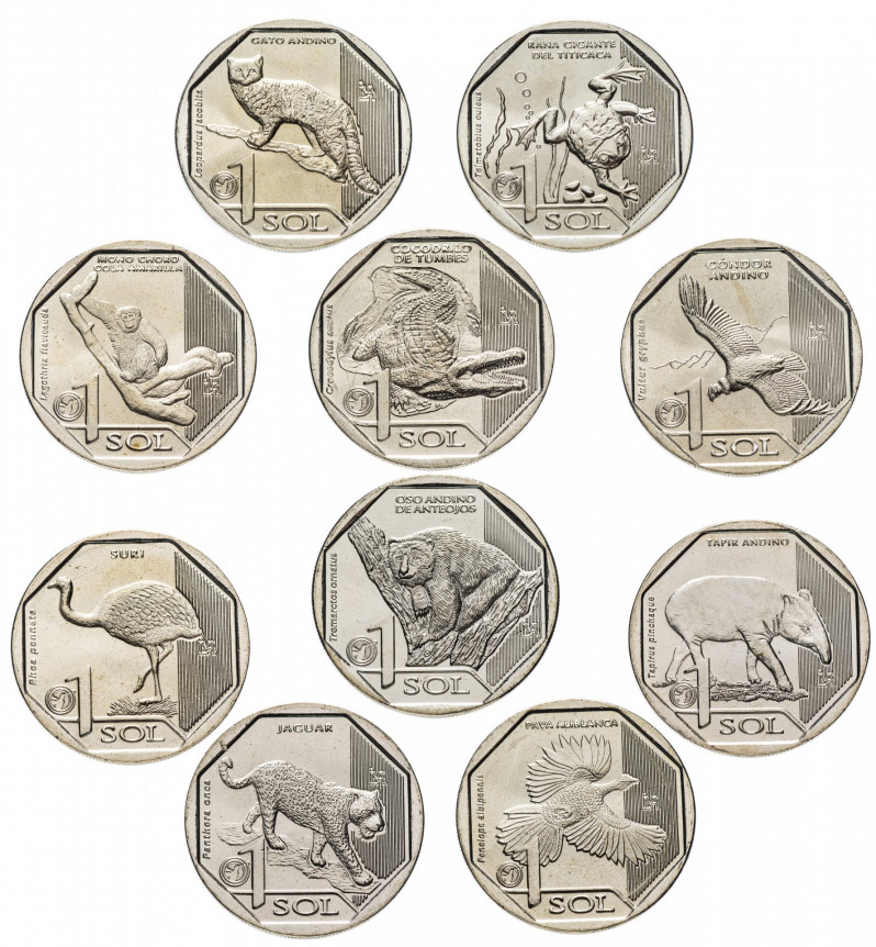 Набор монет - Животные, Перу, 2017-2019 гг (10 монет)