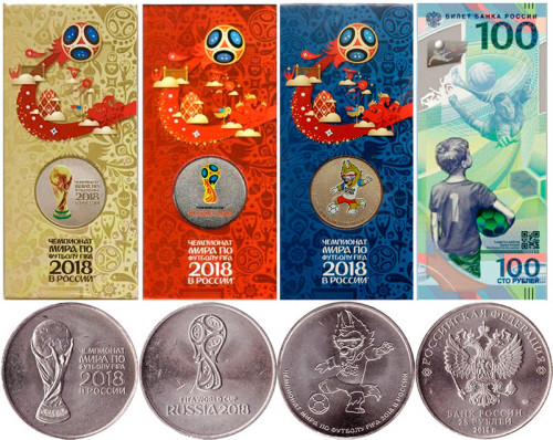 Набор из 6 монет и банкноты - Чемпионат мира 2018 год