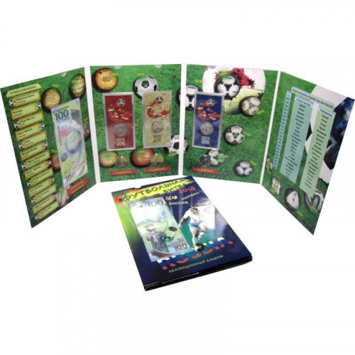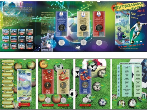 Набор монет - Чемпионат мира по футболу 2018 года, 6 монет и банкнота в блистерном альбоме