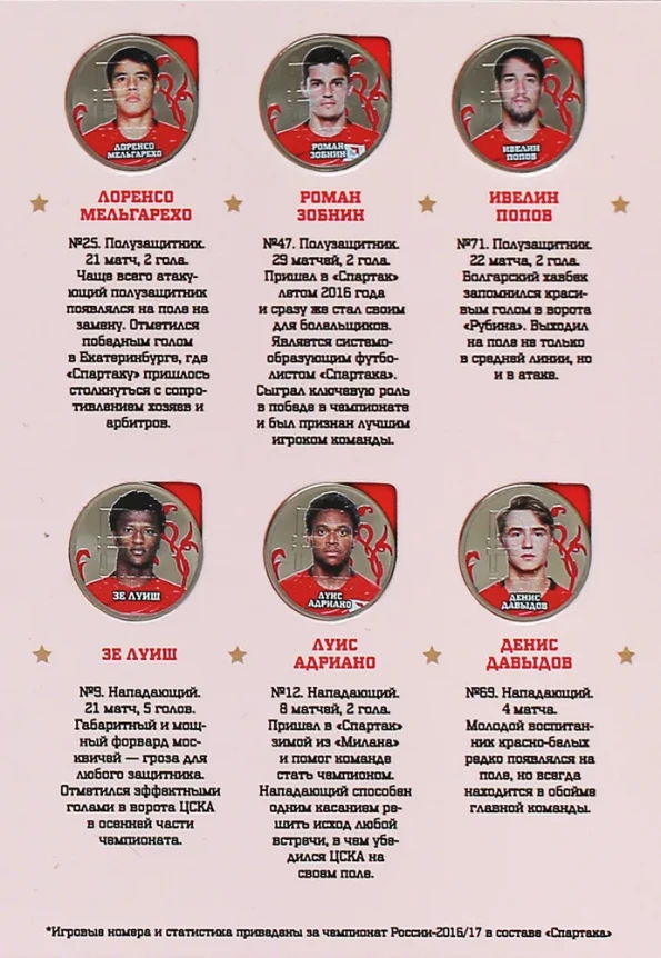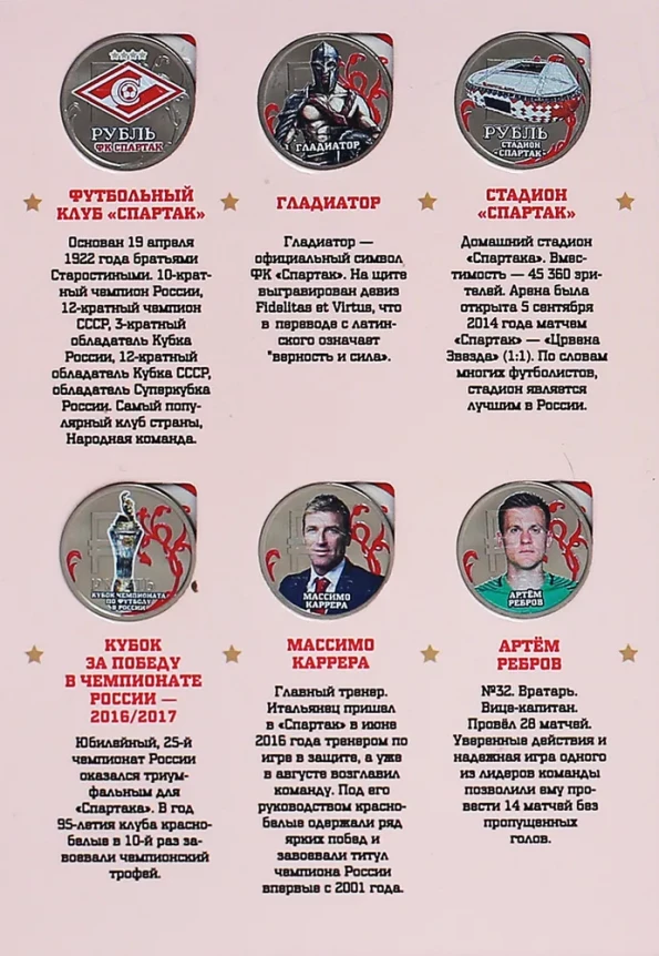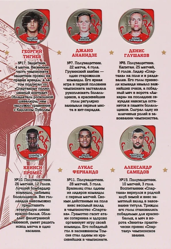 Набор из 24 коллекционных монет Чемпионский состав ФК Спартак Москва 2016-2017