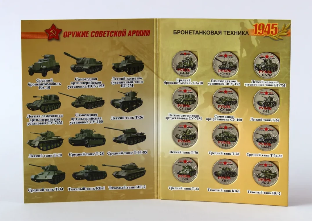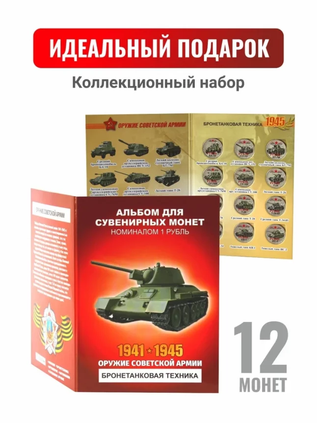 Набор монет - "Оружие Советской армии - Бронетанковая техника (12 монет в альбоме)