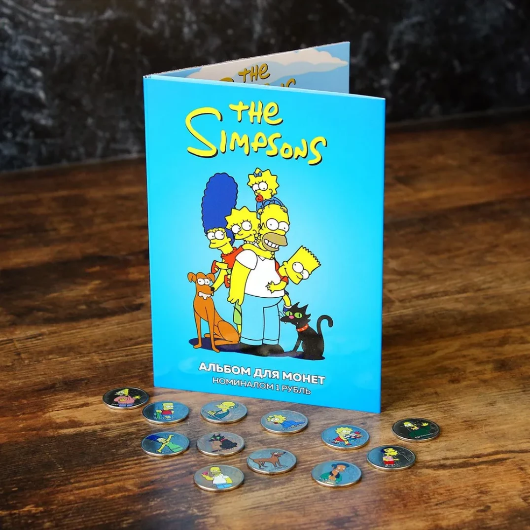 Набор монет - "The Simpsons" (Симпсоны), 12 монет в альбоме