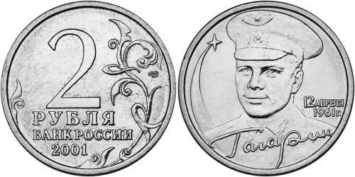 2 рубля - Ю.А. Гагарин, спмд, 2001 год