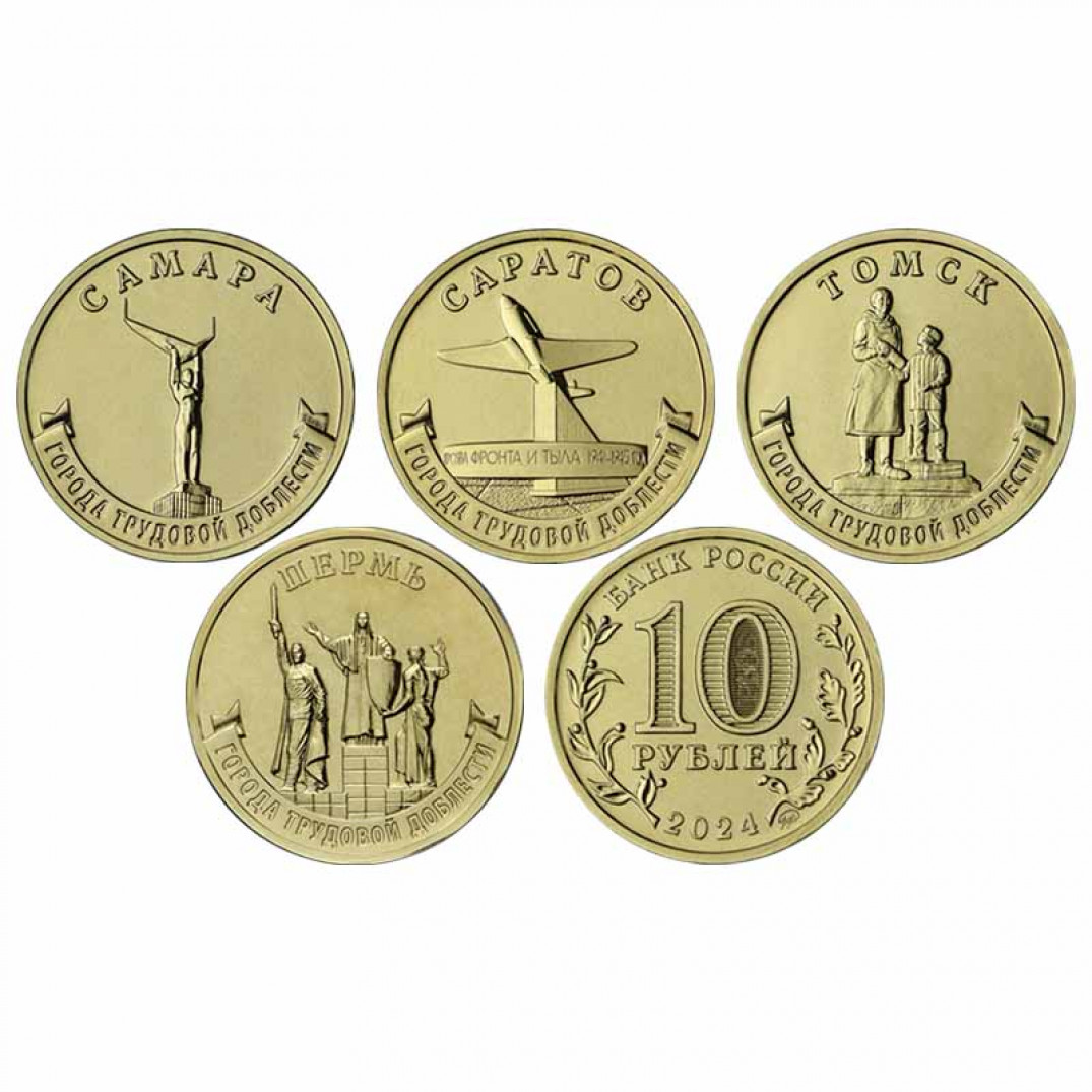 Набор из 4-х монет Города трудовой доблести - Пермь, Самара, Саратов, Томск, 2024 год