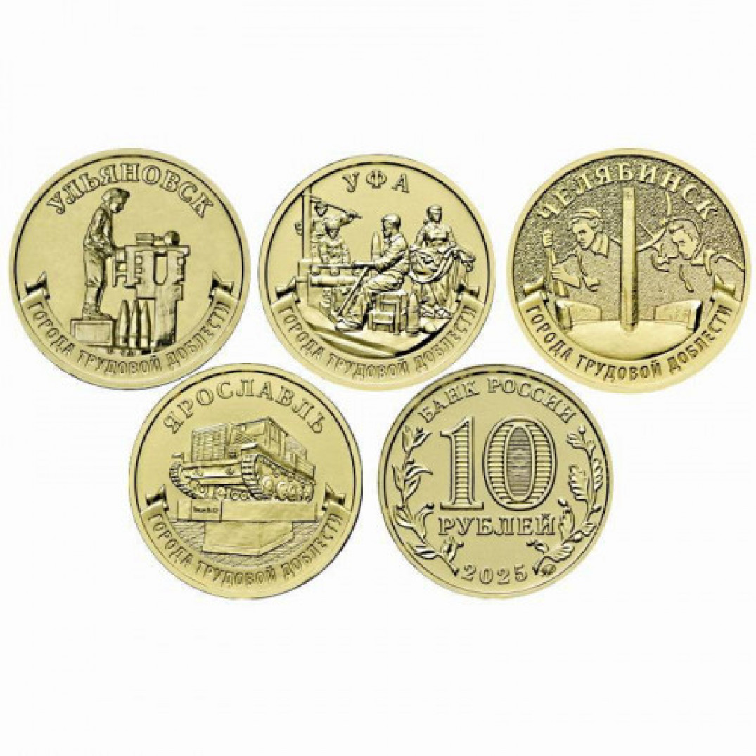 Набор из 4-х монет Города трудовой доблести - Ульяновск, Уфа, Челябинск, Ярославль, 2025 год