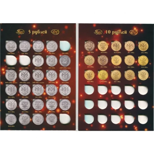 Набор 5 и 10 рублей 1997-2023 гг ( 41 монета в альбоме)