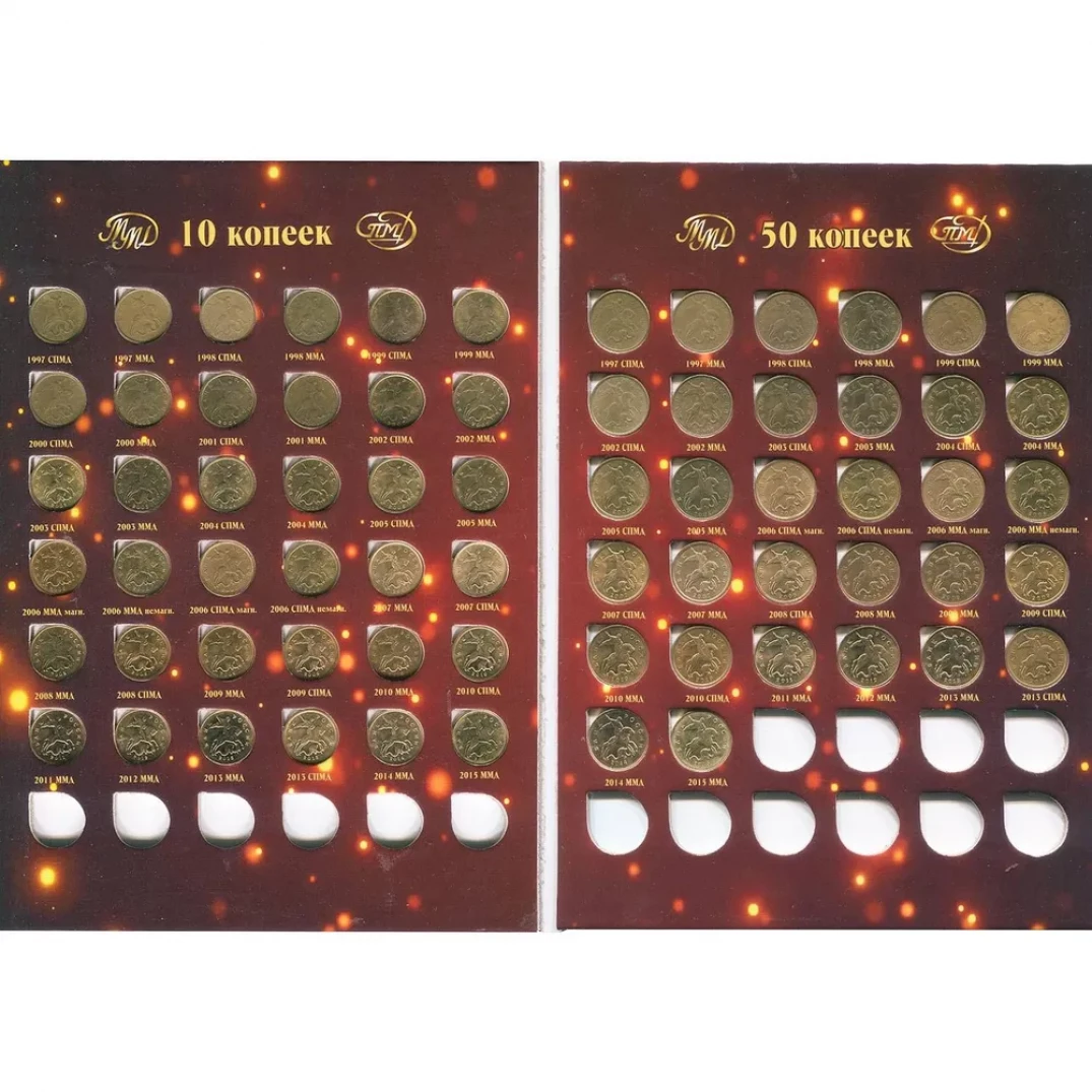 Полный набор 10 и 50 копеек 1997-2015 гг ( 68 монет в альбоме)