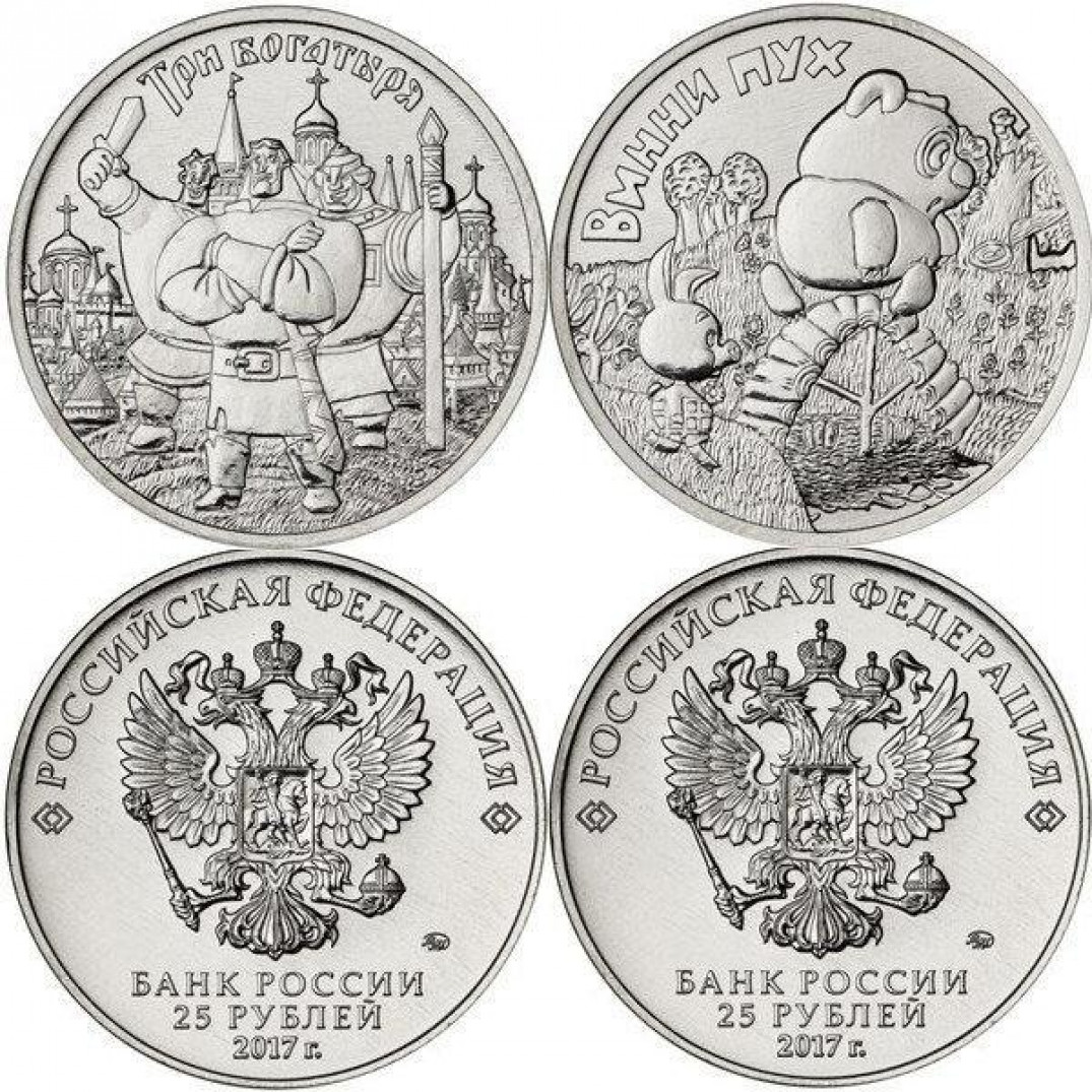 25 рублей - мультфильмы "Винни Пух" и "Три Богатыря", 2017 год