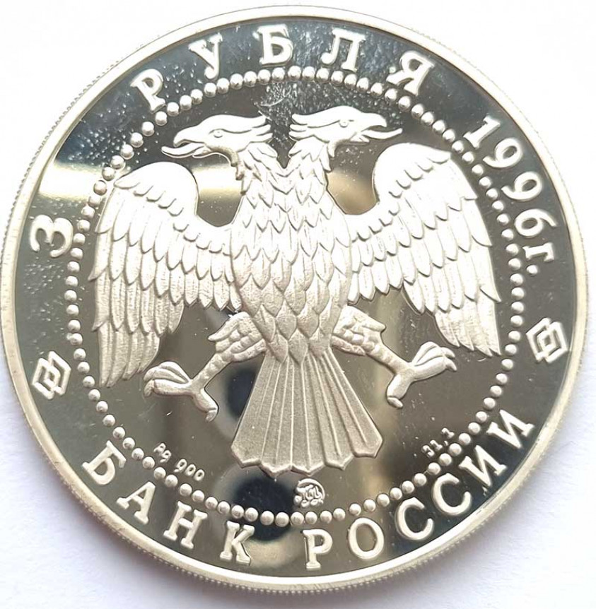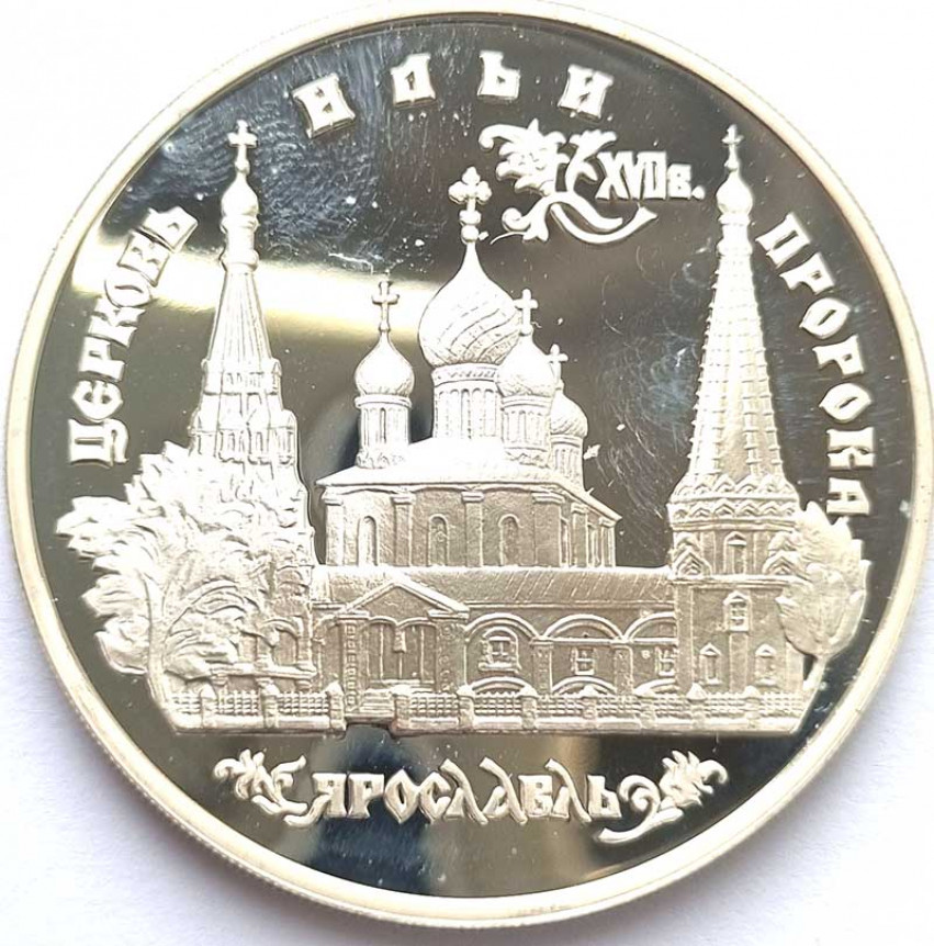 3 рубля - Церковь Ильи Пророка в Ярославле, 1996 год, серебро