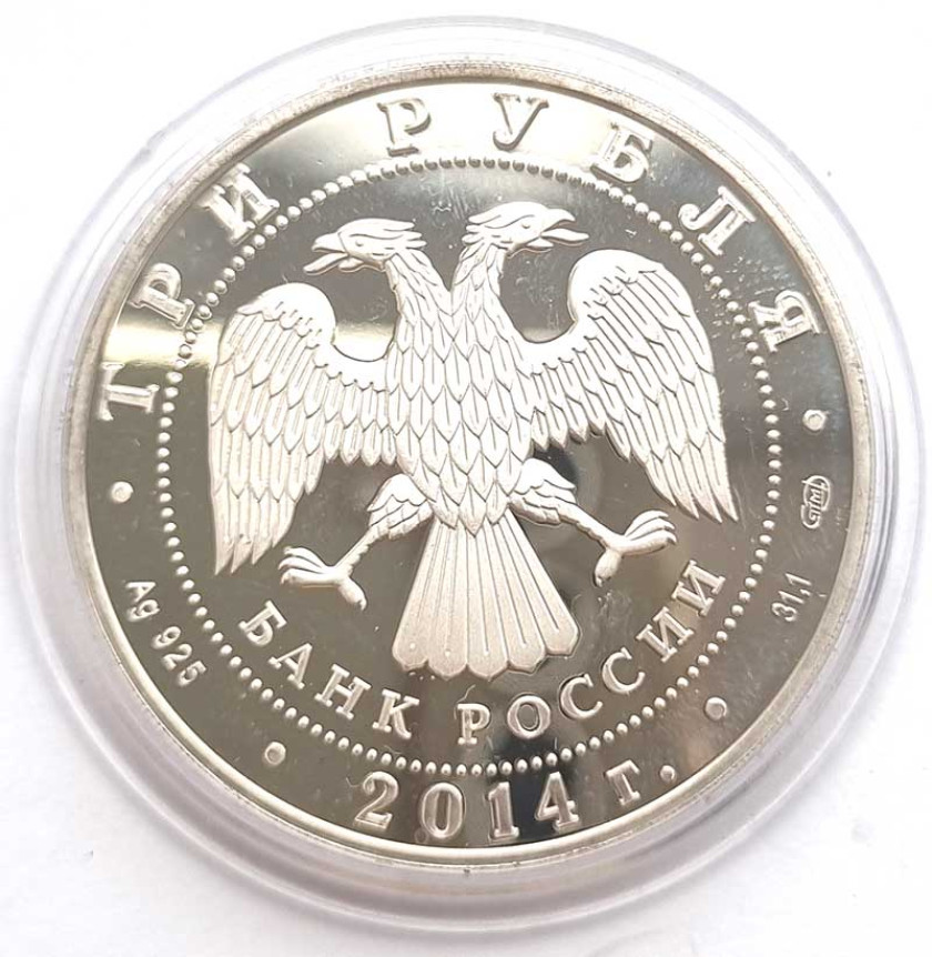 3 рубля - 250 лет со дня основания Государственного Эрмитажа, 2014 год, серебро