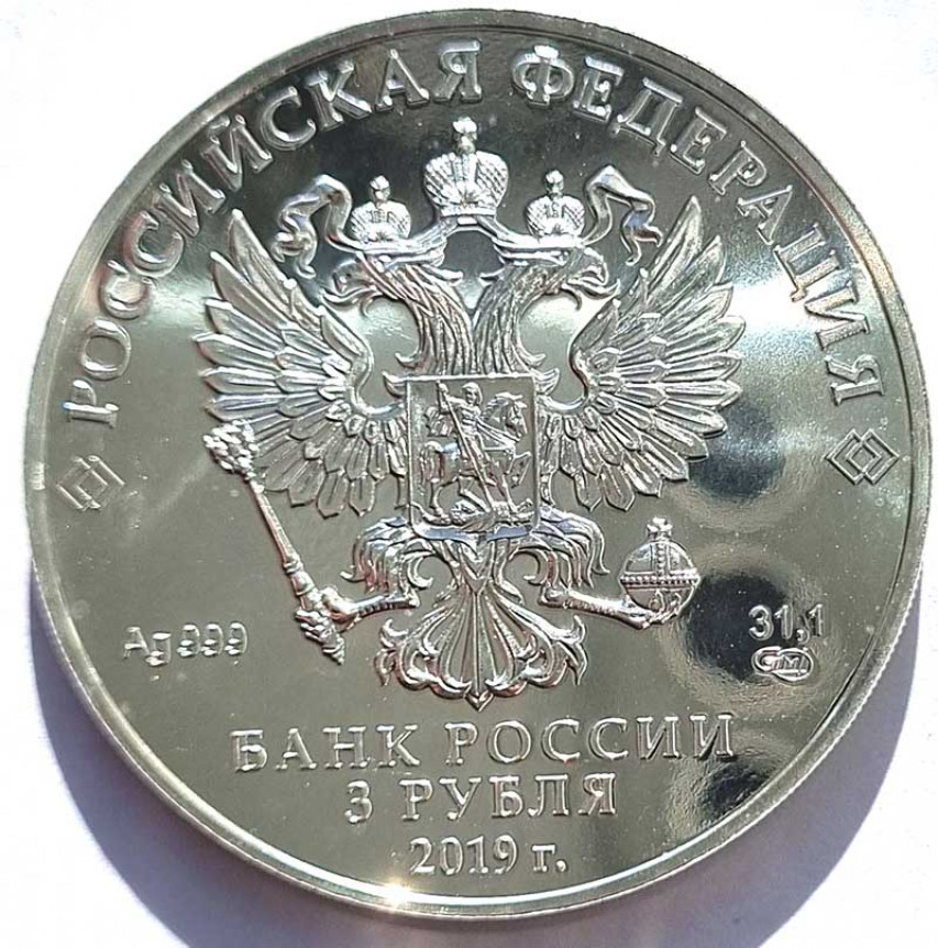 3 рубля - Георгий Победоносец, 2019 год, СПМД, серебро