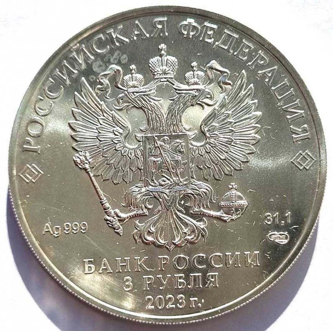 3 рубля - Георгий Победоносец, 2023 год, СПМД, серебро