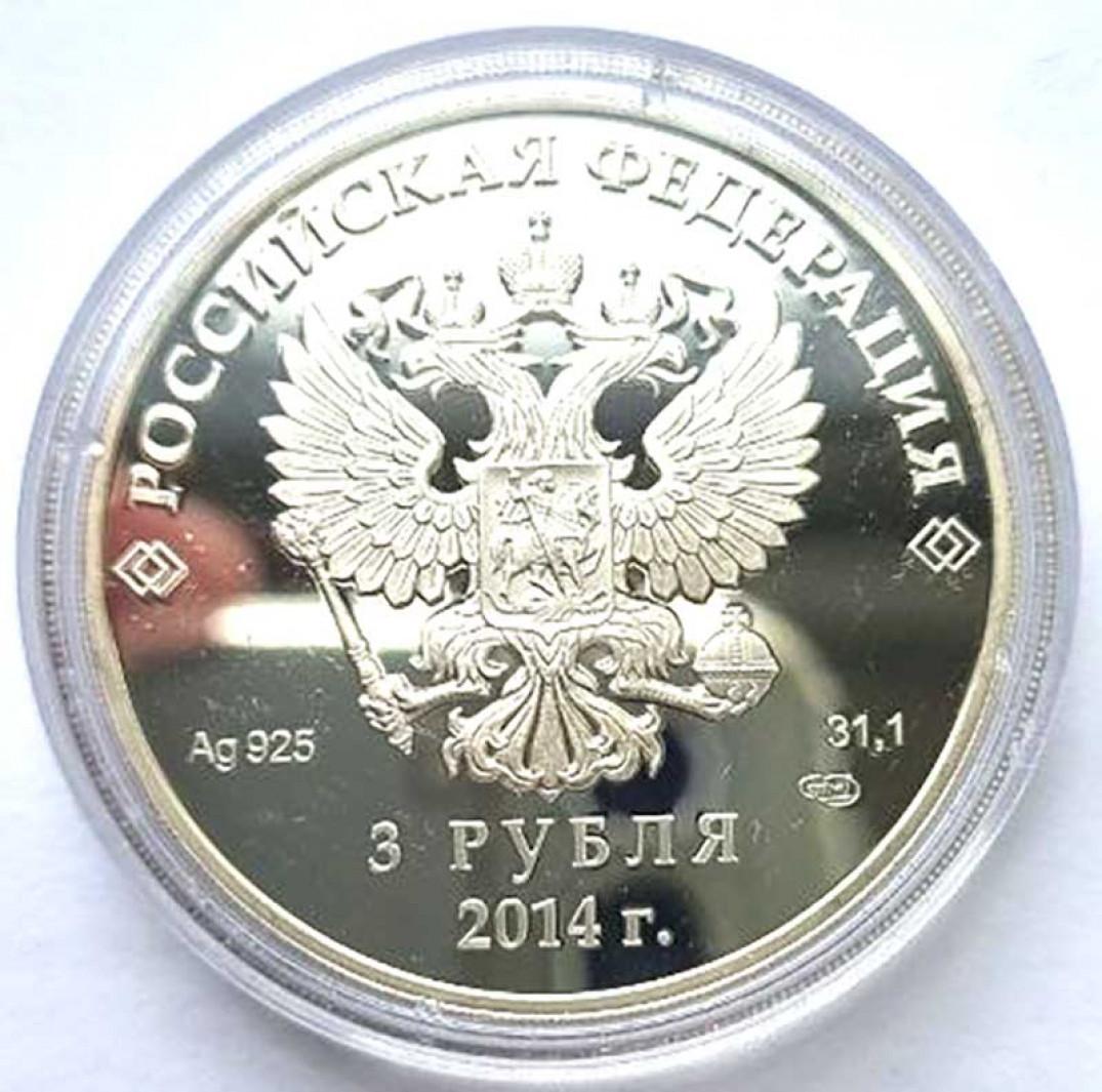 3 рубля - Олимпиада в сочи - Бобслей, 2014 год, серебро