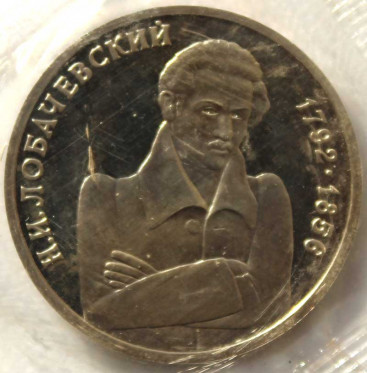 1 рубль - 200 - летие со дня рождения Н. И. Лобачевского, 1992 год, PROOF