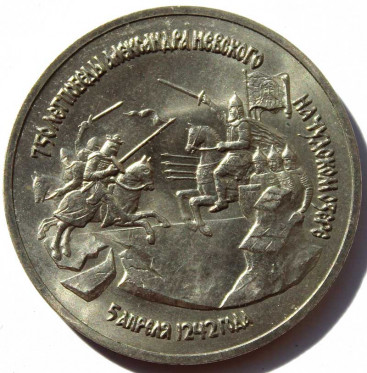 3 рубля - 750-летие Победы Александра Невского на Чудском озере, 1992 год, АЦ