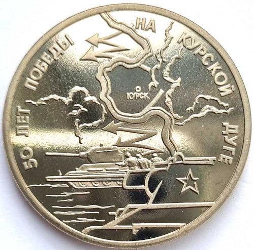 3 рубля - 50-летие Победы на Курской дуге, 1993 год, PROOF