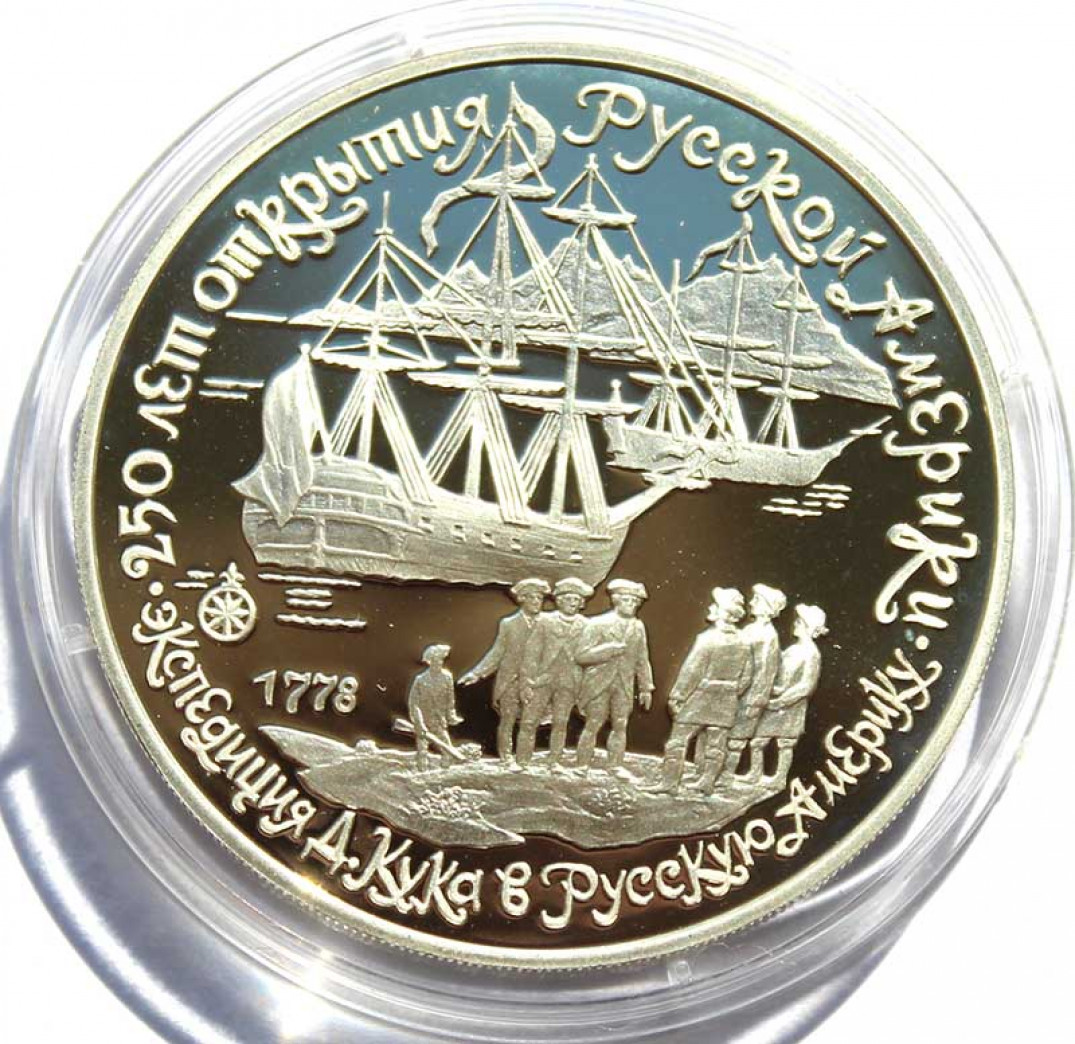 3 рубля - Экспедиция Д. Кука в Русскую Америку, 1990 год, PROOF
