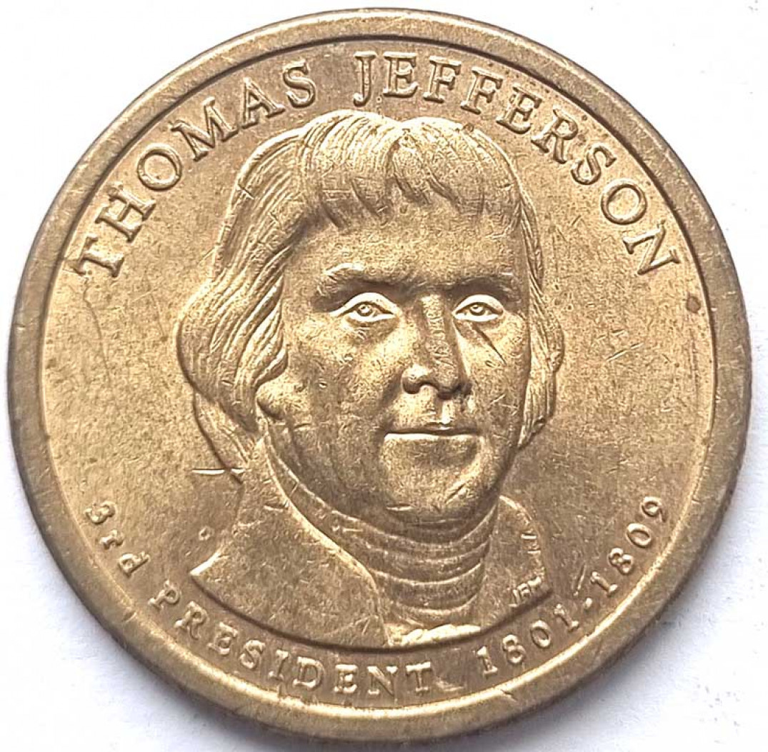 1 доллар - 3-й - Томас Джеферсон, США, 2007 год, пятнышки