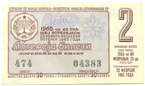 Лотерейный билет 23 февраля 1965 год