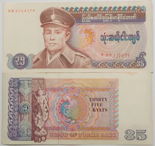 Банкнота 35 кьят - Бирма, 1986 год, UNC